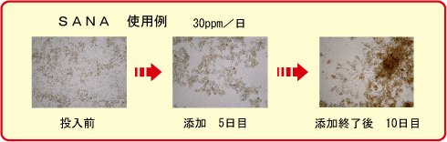 弊社のシーディング剤は、生物処理槽にとって有効な微生物をシーディングするだけでなく、既存の微生物叢をも活性化する各種成分を配合し、施設の能力を最大限に引き出すことに目的としています。