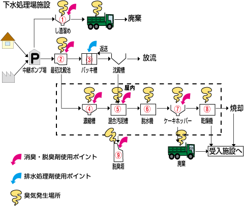 下水処理場関連の臭気対策 (サナ使用ポイント)